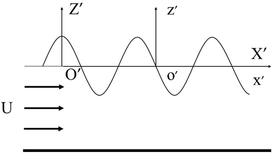 To illustrate the coupling effect of waves and currents, a coordinate system is established in the new wave and current field, as shown in Figure 3. O’X’Z’ is the spatial fixed coordinate system, and o’x’z’ is the coordinate system of motion with the current. The wavelength and wavenumber are the same in both sets of coordinate systems, and the wave frequency and phase velocity are different.