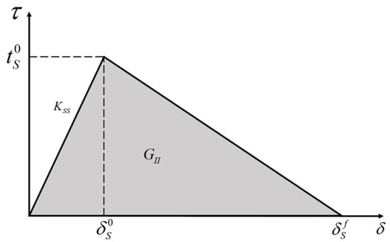 The critical fracture energy input in the numerical model is the value inferred from the currently known parameters. This value is the area of GII in Figure 5. The relationship of Kss, , , and GII is shown in Figure 5. Table 1 shows the values introduced in ABAQUS®.