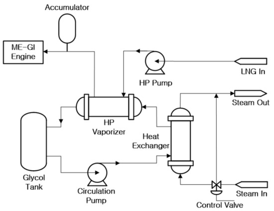 In order to supply LNG as a fuel to marine engines, a regasification system is needed to raise it to the appropriate temperature and convert it into gas. Figure 1 shows an example of a regasification system for an LNG-fueled marine engine.
