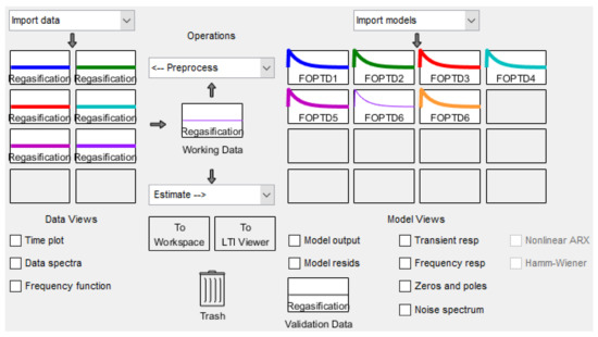 Figure 4 shows the screen of the system identification toolbox [32,33] for approximating the regasification system to an FOPTD model.