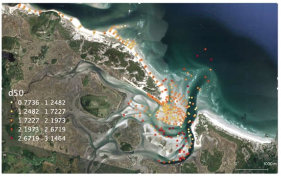 - Fenster, M.S.; Dolan, R.; Smith, J.J. Grain-size distributions and coastal morphodynamics along the southern Maryland and Virginia barrier islands. Sedimentology 2016, 63, 809–823. [Google Scholar] [CrossRef]