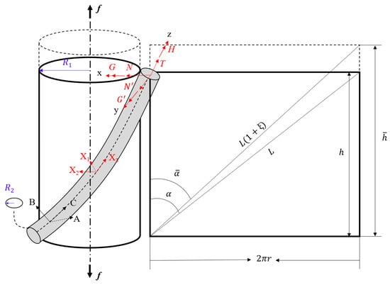 The mechanical model of helically wound structures can be generally established as shown n Figure 2. A helically wound structure with an undeformable cylindrical core is proposed. Considering the complexity of the reinforced armor layer, the following assumptions are given: