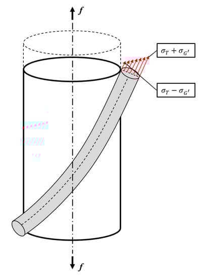 In the design stage, the theoretical model of a small winding angle is unable to satisfy the design requirements because of the ignorance of the torsion deformation, which not only increases the manufacturing cost but also easily causes safety accidents. Therefore, this paper analyzed the error of stress estimation of marine flexible pipe/cables. The tensile, bending and torsional deformation may appear when stretching helically wound slender structure. The normal stress , as shown in Figure 11, and were the normal stress due to tensile deformation, and was the normal stress due to bending deformation.