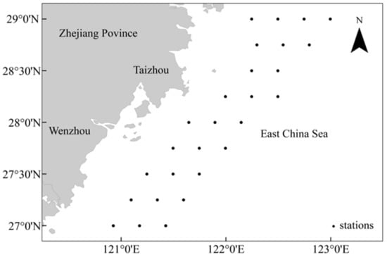 Distribution of sampling stations in offshore waters of southern Zhejiang.
