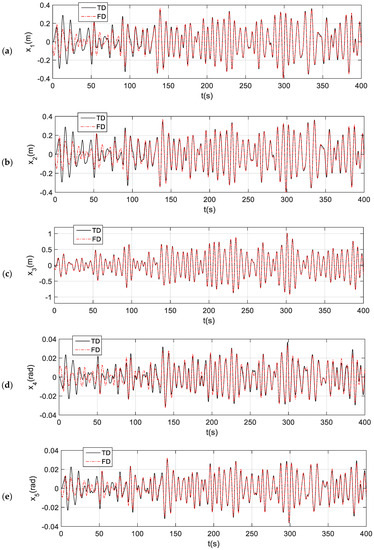 The most used time-domain equation for the wave-structure interaction would be the Cummins’ time-domain equation [28] with the Ogilvie relation [29], namely, the hybrid frequency–time domain method, according to [25], and the time-domain equation has the following form: