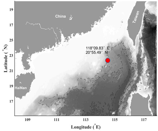 The whole observation platform with the ARTP was deployed in the north of the SCS (South China Sea) at (20°55.49′ N 118°09.83′ E). The depth of this ocean area is about two thousand meters, which meets the requirements of sea trial. The field test location of the observation platform is shown in Figure 2. According to the observation range limitation of the two retainers, the ARTP’s motion range is approximately ranged from 500 m to 1500 m under the seawater.