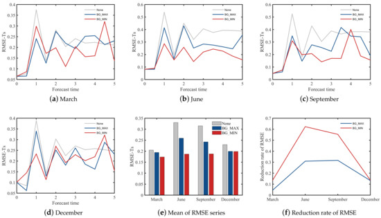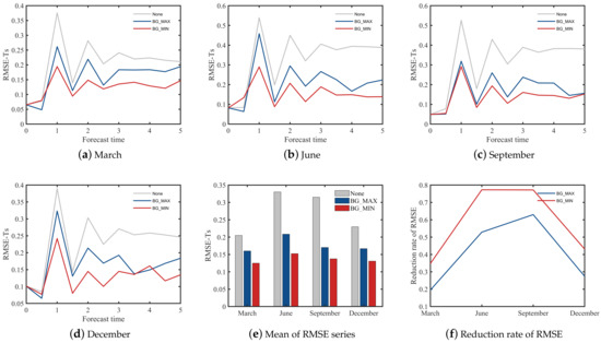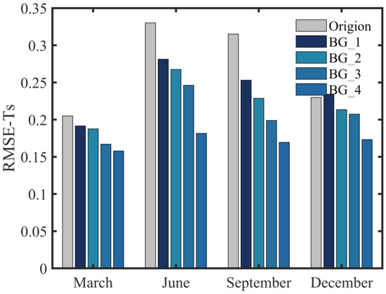 The four groups of experiments had consistent results. In June and September, the mean of the RMSE series had an obvious downward trend, as the background value of the sampling region decreases. In March and December, this trend has also been shown, but the forecast has limited room for improvement and some out-of-trend values may appear, such as BG_2 in December. After the above experiment, the conclusion is drawn that the temporal variability in the forecast is positively correlated to sampling value to a certain extent.