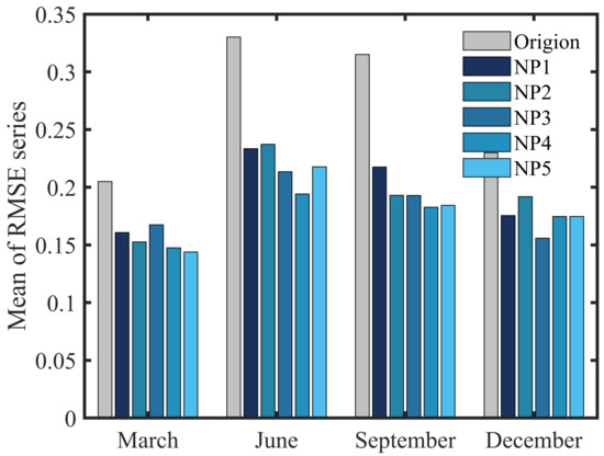 The mean of the RMSE series analysis introduced different observation position sets in four months.