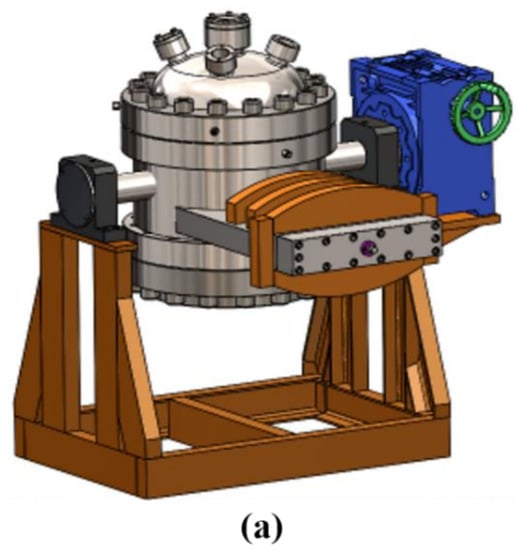 The reaction system mainly includes the high-pressure reactor (DLCS) and a supporting temperature control system. We selected 316 L forgings with corrosion resistance as the steel for the construction of the reactor. Comparing 316 L with conventional cold rolling, the material is more compact and has higher compressive strength. The reactor is mainly composed of an upper cap, a bottom plate, an intermediate reactor body and movable flashboard components. The appearance of the DLCS is shown in Figure 1. The outer chamber of the flashboard is linked with the reactor body by welding, and the upper cap and bottom plate are linked with the body through screws. The effective volume of the whole reactor is about 30.2 L and the maximum pressure resistance is 25 MPa. Due to the great dimension of real NGH deposits, hydrate simulator is gradually developed to large scale through increasing the effective volume. According to reports, the largest reactor has been developed to 1710 L. With the enlarged scale, relatively reduced boundary effect, and more complex hydrate formation/dissociation state, the experimental condition could be regarded as closer to the in situ hydrate-bearing sediment environment [10,33,36]. For the newly built simulator in this study, considering the increasing difficulty of design and experimental operation with the enlargement of the size, the effective volume of 30.2 L was adopted.