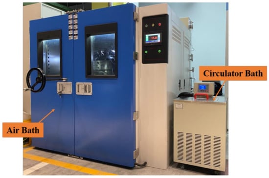 The experimental system temperature is controlled by an air bath and a water bath circulation system, as shown in Figure 6. The temperature control ranges of air bath and water bath are both −10~100 °C, and the accuracy are ±0.2 °C. Through the dual temperature control, the temperature in the reactor can be highly stable and reach the target temperature faster. The air bath mainly provides a constant ambient temperature for the reaction system, and the water bath circulation system can enhance the heat supply. In addition, the influence of ambient temperature heat transfer on hydrate dissociation in the hydrate exploitation process can be investigated through the change of single experimental conditions and coordinated temperature control.