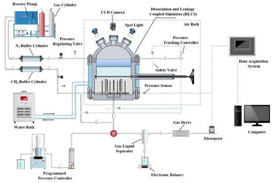 The experimental system mainly consists of three parts: reaction, injection and gas production system. The reaction system is the core part of the entire experimental system, which was used to construct the in situ environment containing hydrate sediment, overlying strata and overlying seawater in the DLCS. The maximum simulated ocean depth of the DLCS can reach 2000 m. According to the operating and experimental requirements of the DLCS, corresponding collaborative systems were equipped.