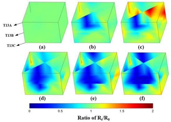 Evolution of Rt/R0 ratios for R4 and R7 from the boundary to the center and different horizons of the hydrate-bearing sediment during the whole gas production process.