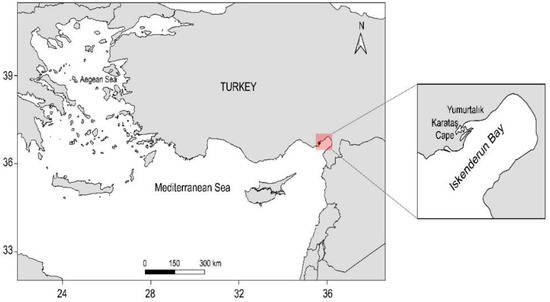 The Lusitanian cownose ray (Rhinoptera marginata, Geoffroy Saint-Hilaire, 1817) is a large epibenthic ray that inhabits sandy or muddy substrates on the continental shelf (depth range: 20 to 100 m) along the west coast of Africa and the Mediterranean Sea [1,2]. Although commonly captured in various African fisheries due to its abundance inshore, the Lusitanian cownose ray is considered rare within Mediterranean waters and is the only member of Rhinoptera spp. reported to inhabit this region [3,4]. This species is listed as “Data Deficient” in this region and globally assessed as “Near Threatened” by the IUCN [5]. Due to their rare occurrence and recent increases in both direct and indirect fishing pressure, the sustainability of this ray, along with other elasmobranchs, is threatened within the Mediterranean. Unfortunately, high at-sea discard rates (driven by low market values for sharks and rays) and unregulated harvests have significantly limited the collection of biological data pertaining to this and other cartilaginous fishes in this region [6,7,8]. For example, data regarding the Lusitanian cownose ray is limited to length–weight relationships, distribution studies and a brief reproductive investigation [2,9,10,11,12]. Very little is known about any migratory behaviour of the Lusitanian cownose ray in the Mediterranean Sea. However, we know that the most studied Rhinoptera species, R. bonasus, displays migratory behaviour in its native geographical distribution. Our guess is that the Lusitanian cownose ray is distributed across a very wide range in the Mediterranean Sea. In an earlier study, Tirasin and Basusta [13] found a total of 129 individual rays within a school formation very close to the present study area. Of the 129 specimens, 89 were female and 40 were male. When dissected, 36 female fish were found to be gravid, each bearing one near-term embryo. The authors, after presenting a great deal of information and discussing the findings from other relevant publications, concluded that the incidental catch of such a large number of fish, including many gravid specimens with near-term embryos and mature males together in one single haul, suggested that the rays were in a schooling formation when they were captured. The males may have been following the females so that they could maximise their chances of mating with them soon after parturition. They also argued that the location of the haul in Mersin Bay—a marine area in the vicinity of the estuaries of two rivers, the Tarsus and Seyhan—and its relative closeness to the sampling location of the neonate in Iskenderun Bay prompt a hypothesis that these fish may be using this region as a reproduction and nursery area. The Yumurtalık Bight and the estuaries of big rivers such as the Seyhan and Ceyhan are likely candidates for a Lusitanian cownose ray nursery-ground in the northeastern Mediterranean. There have also been previous observations of neonates, small juveniles and gravid females (N. Başusta, pers. obs.) in this region, which provide additional support for this proposition. Without a more comprehensive understanding of this species’ life history, managers cannot accurately assess population levels and establish protective regulations to prevent its future exploitation [14].