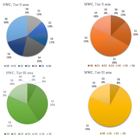 Furthermore, based on the realistic environmental conditions that can be experientially predicted based on logbooks for container ships on the particular sailing route, the overall sailing route can be divided into segments with respect to the sea states that will occur during one year. In that context, the occurrence of moderate (MWC) and harsh weather conditions (HWC) is defined for the analyzed sailing route, denoted as and for moderate and rough sea states, respectively.