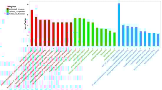 GO category analysis of top30 entry map. The horizontal axis in the figure is the name of the GO entry, and the vertical axis is a −log10 p-value.
