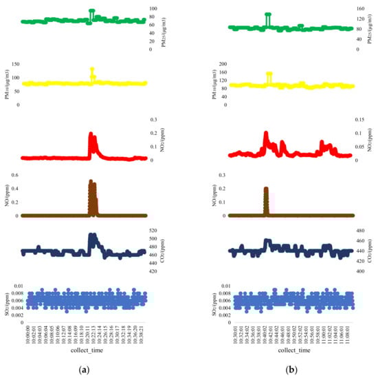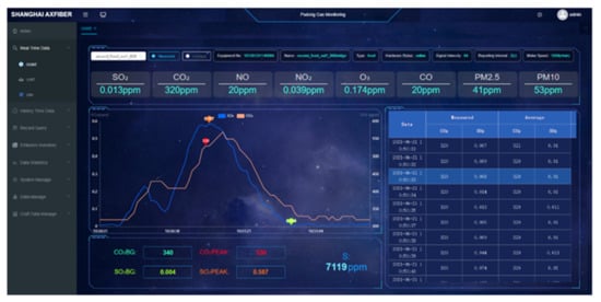The software interface was developed according to the method in Section 2.3 and displayed the emission data monitored by the equipment (Figure 5). This system automatically analyzed the time series measurements of a plume and calculated the emission factor and the FSC.