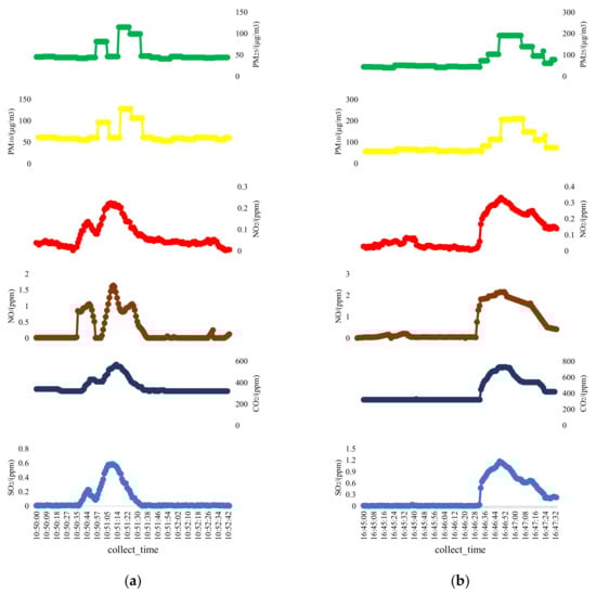 Measurement data of typical plumes from two groups of inland river ships: (a) plume 3, (b) plume 4.
