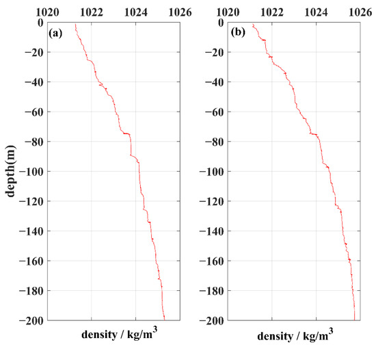 Figure 10 shows the density profiles obtained from the CTDs on 19 May 2021, with a calculated background mean density of 1024.237 kg/m3. is substituted into the formula, and the energy is calculated according to the temperature and current velocity profiles of the ISWs in Figure 5 and Figure 6. The KE and APE of the incident ISWs were obtained as 1.44 and 1.018 MJ/m2, respectively, so F was approximately 2.461 MJ/m2. The KE and APE of the reflected ISWs were 0.807 and 0.69 MJ/m2, respectively, so the depth-integrated horizontal energy flux was approximately 1.497 MJ/m2, accounting for only 61% of the incident ISWs. The above analysis shows that the reflected ISWs had less energy and thus were easily dissipated and could not travel further distances. Where does the remaining energy of the incident ISWs go? Our hypothesis is that this part of the energy is dissipated near the Dongsha Atoll, which promotes the resuspension of local nutrients and is beneficial to the growth of ecological environments such as coral reefs.
