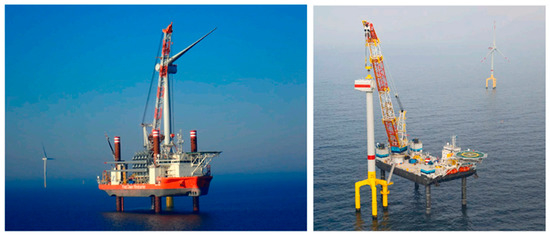 23]. At sea, whether in the installation of the wind turbine or the foundation or the replacement of large components, the corresponding transportation tools are needed for transportation to the wind field and must be equipped with corresponding equipment to be installed in place. The wind power operation and maintenance platform usually shuttles between several adjacent wind fields to maximize the platform capacity during the late stages of wind field construction. The wind power operation and maintenance platform (see