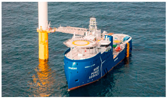 16]. According to the estimation of DNV Classification Society, the average number of annual outages of an offshore wind turbine can be as high as 40 times, and the overall probability of failure is maintained at about 3%. On average, about 30 offshore wind turbines need a professional offshore wind turbine maintenance ship for daily maintenance work. Therefore, the demand for offshore wind turbine maintenance ships (see