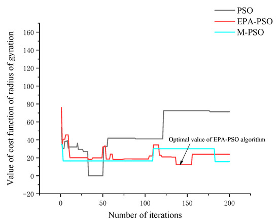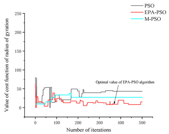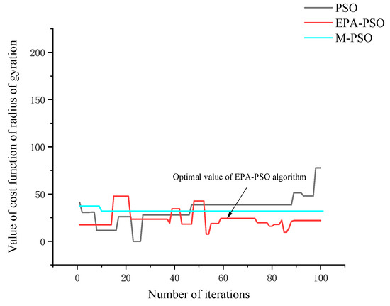 The value of cost function of the radius of gyration of the EPA-PSO algorithm after 100 iterations.