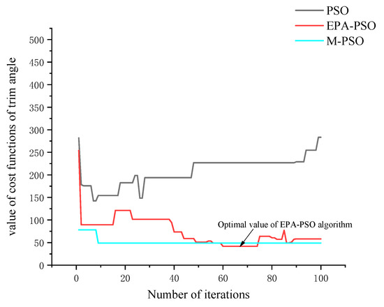 Numerical comparison of cost functions of trim angle after 100 iterations.