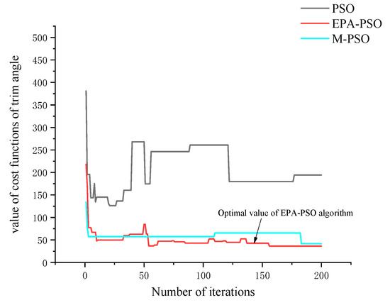 Numerical comparison of cost functions of trim angle after 200 iterations.