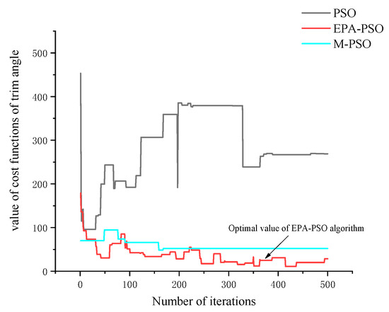 Numerical comparison of cost functions of trim angle after 500 iterations.