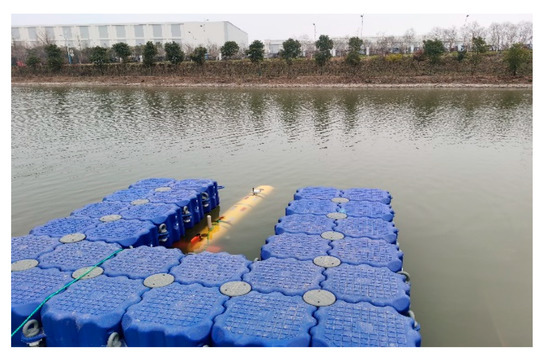 The feasibility of the EPA-PSO algorithm was verified in a series of offshore trials in Shanghai in February 2022. The validation platform was an AUV developed by Harbin Engineering University, which was mainly equipped with a tail propeller, cross rudder, side propeller, vertical propeller and other actuators. At the same time, it is equipped with sensors such as the Doppler Velocity Sonar (DVL), Magnetic Compass, altimeter, depth gauge, Inertial Navigation System (INS), the Beidou navigation system, and a radio communication system. According to relevant basic control experiments, the radius of rotation of AUV is about 5 m.