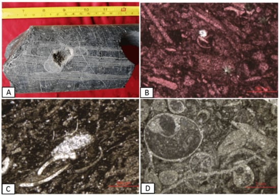 - Dunham, R.J. Classification of carbonate rocks according to their depositional texture. In Classification of Carbonate Rocks—A Symposium; Ham, W.E., Ed.; Memoir 1; American Association of Petroleum Geologists: Tulsa, OK, USA, 1962; pp. 108–121. [Google Scholar]