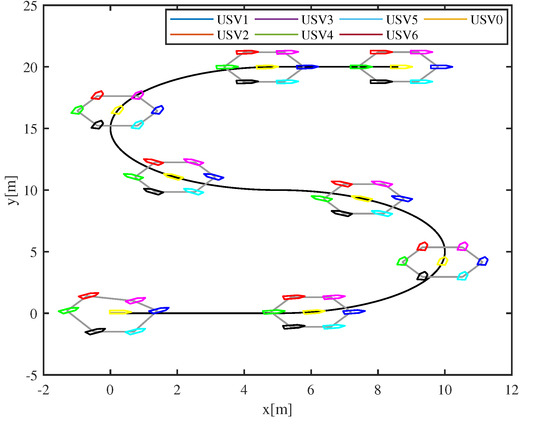The initial positions of USVs are meeting the maximum collision avoidance distance, i.e., . USVs are always within the communication range.