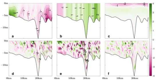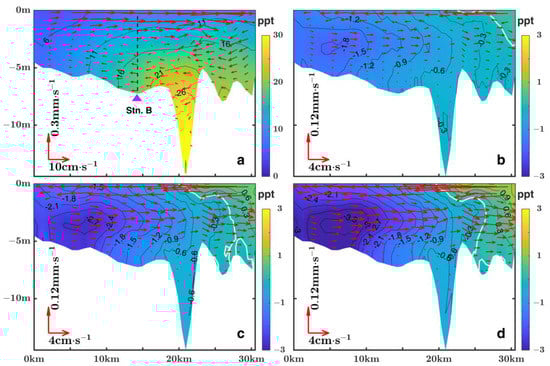 - Chen, S.N.; Sanford, L.P. Axial wind effects on stratification and longitudinal salt transport in an idealized, partially mixed estuary. J. Phys. Oceanogr. 2009, 39, 1905–1920. [Google Scholar] [CrossRef]