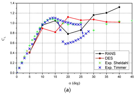 - Li, D.; Men’shov, I.; Nakamura, Y. Detached-eddy simulation of three airfoils with different stall onset mechanisms. J. Aircr. 2006, 43, 1014–1021. [Google Scholar] [CrossRef]