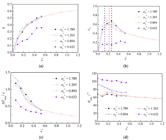 ωh* on the performance of the flapping hydrofoil. As shown in