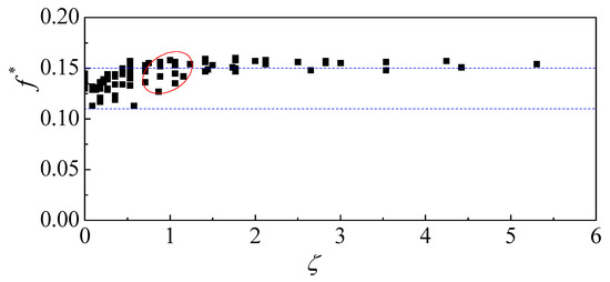 f* is an important parameter in the engineering design of a flapping-hydrofoil turbine, Matthieu Boudreau obtained the variation law of the reduced frequency as a function of the inflow velocity and several dimensionless structural parameters in his research in 2018 [