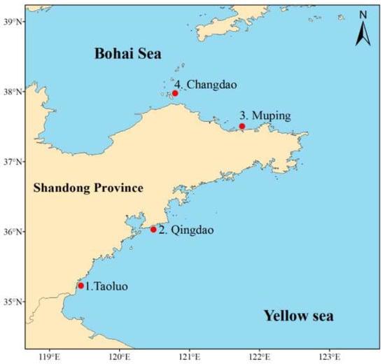 Cultivation of laver is generally limited to shallow water based on the traditional semi-floating and standing-pole culture systems []. In China, N. yezoensis is traditionally cultivated in Jiangsu and south Shandong province, and N. haitanensis is traditionally cultivated in Zhejiang, Fujian and the northeast of Guangdong province. Long and intensive cultivation of N. yezoensis and N. haitanensis in the main production areas leads to problems such as decreasing production and quality, as well as increasing occurrence of diseases, especially under the global climate and environmental changes. Recruitment of new laver species and geographically distinct wild strains of the dominant cultivated species has been recommended and implemented to diversify genetic resources and in turn to strengthen tolerance to climate change and improve the product quality [,,,,,]. In recent years, a process to extend the dominant laver cultivars to offshore deep-sea areas and to develop northward industrial cultivation of laver in China is ongoing [,]. N. haitanensis has been cultivated in Jiangsu, Shandong and even Liaoning province, with culture area of more than 1000 ha. N. yezoensis has been cultivated in Liaoning province and north Shandong province, with culture area of 3000–4000 ha. However, it has been found in practice that the processed products of the northward cultivated laver are sometimes characterized by poorer quality in the light of appearance and taste, compared to the products from the main production areas.