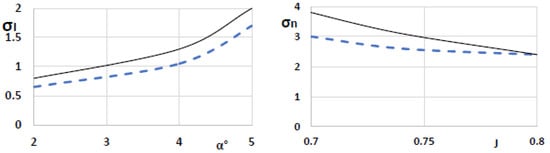 However, the set of parameters presented in Table 2 is insufficient to understand the sensitivity of Dσ to these parameters. On the other hand, the ranges of their variation must be limited. As one can see in [49], the typical range of α° for a marine propeller blade varies from −4° to 4° near the propeller axis and from −1.5° to 3° near the blade tip, whereas the variation of δ between these sections is approximately 0.08 down to 0.04. In addition, as noted in the compendium [50], the cavitation inception number at the propeller leading edge insignificantly depends on the Reynolds number when the blade loading is kept constant.