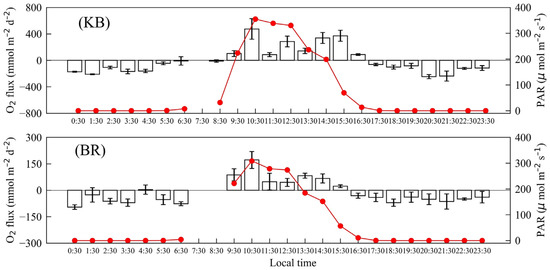 - Volaric, M.P.; Berg, P.; Reidenbach, M.A. Oxygen metabolism of intertidal oyster reefs measured by aquatic eddy covariance. Mar. Ecol. Prog. Ser. 2018, 599, 75–91. [Google Scholar] [CrossRef]