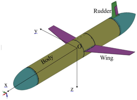 A UG is subjected to the following hydrodynamic forces when it (Figure 2) moves in the vertical plane: hydrodynamic drag of the rudder and hydrodynamic lift and drag of the wing and body. Generally, the structure of the glider is symmetric about the x-z plane and approximately symmetric about the x-y plane. Furthermore, its buoyancy center position is in the x-z plane and close to the x-y plane or in the x-y plane.