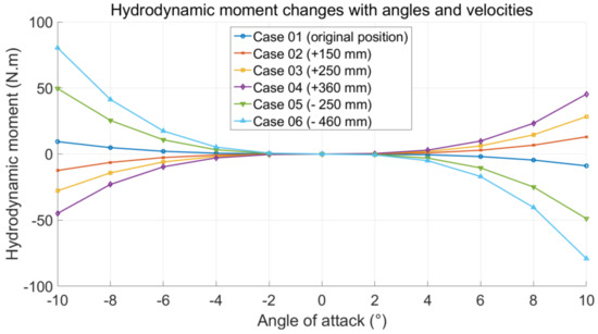 Based on Equation (1), the hydrodynamic moment () of an UG rotating about the y-axis with vertical motion in the x-z plane expressed as follows: