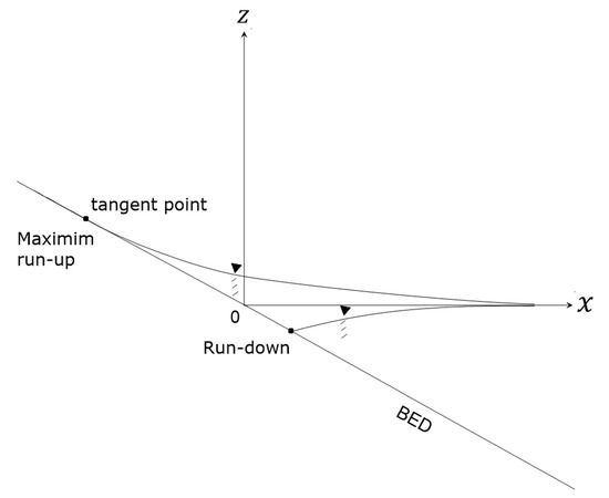The water’s surface makes a tangent to the seabed line for the maximum run-up. The seabed is expressed as: