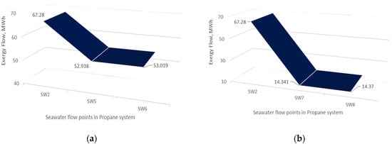 | Cases | LNG Subsystem | Propane Closed Loop | Total Amount of LNG Cold Energy Verifying Initial and Final Conditions, kW | |||||