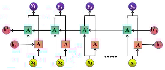 Bi-LSTM is a combination of forward and backward LSTM, as shown in Figure 7. Single-LSTM has been well explained in other studies, and it will not be elaborated on herein. The forward and reverse LSTM hidden layers are responsible for the forward and reverse feature extractions, respectively. The Bi-LSTM model can better consider the influence of before and after attributes of each attribute point in the sequence data than the single-LSTM model. The forward process of the Bi-LSTM model is denoted by Equations (15)–(20), and the backward process is the same as the forward process.