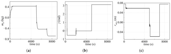 | the positions of fixed mass, moving mass, and variable mass in inertial frame | the positions of fixed mass, moving mass, and variable mass in body frame | ||