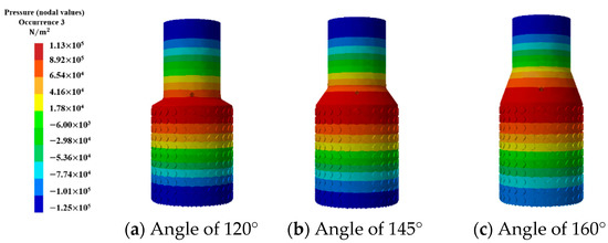 - In this paper, the simulation results of three channel expansion angle schemes of 120°, 145° and 160° were compared. The total sound pressure level was reduced by about 22 dB for the 145° scenario, and 13 dB and 1 dB for the 120° and 160° scenarios, respectively. The final result was that the muffler shell adopted a 145° angle to expand the cross-sectional area of the flow channel; this angle had the best effect on stable flow, vibration and noise reduction;