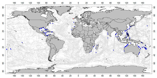 A dot distribution map of the species was created based on georeferenced data contained in the GBIF and OBIS online marine biogeographic databases [12,13].