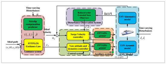 The other sections of this paper are arranged as follows. Section 2 introduces the problem formulation and preliminaries. Section 3 presents the design details of the FFTPLOS guidance law. Section 4 introduces the design of the path-tracking controller with the ROESO. Section 5 describes a proof-of-system stability. Section 6 provides simulations of path following under time-varying disturbances. Finally, the conclusion of this paper is in Section 7.