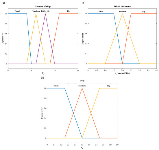 To consider all the factors discussed by the expert group in the modeling of the ship domain, this study attempted to reflect an additional factor. To consider a factor as ETC such as TS size, current, fishing boat, and irregular situation besides the two most frequently presented ones above, three input MFs were constructed, as shown in (13).