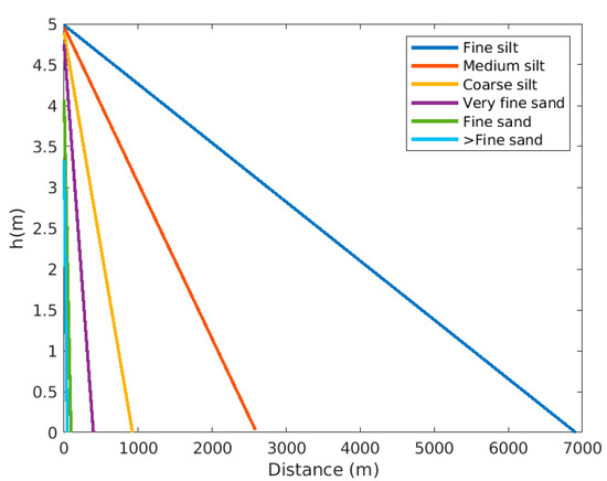 In the vertical, the particle settling velocity is governed by the Stokes settling equation. The total settling time for a particle suspended at an initial height of 5 m above the seabed is provided for each grain size (Table 2) (from [5]).