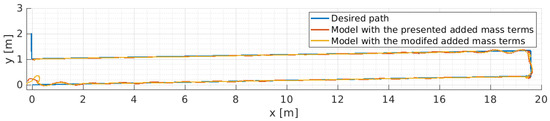 Computational fluid dynamics (CFD) methods are able to provide better estimation of the hydrodynamic coefficients; however, their results may be unsatisfactory due to the difficulty in modeling the smoothness of the vehicle’s surface and and the interaction of the propulsion system with the hull [43]. Therefore, as the actual vehicle was available, to achieve a better estimation, the vehicle’s major coefficients were derived from experimental data while only derivatives that were difficult to obtain were estimated by semi-analytical or pure empirical forms.